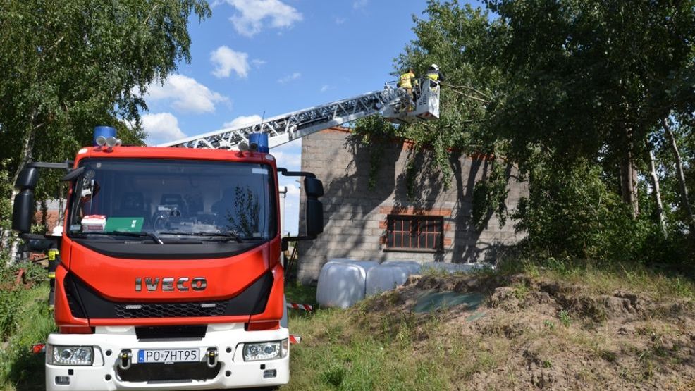 Do niecodziennej sytuacji doszło w Dobieszczyźnie (gmina Żerków). Na budynek gospodarczy spadło drzewo