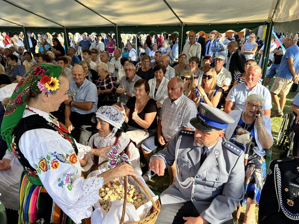 Starostami tegorocznych dożynek są miejscowi rolnicy - Aleksandra i Krzysztof Weber. To oni - wraz z wójtem Wiesławem Schreiberem i sołtys Chromca Lidią Szymańską - podzielili dożynkowy bochen i rozdali go wśród gości i uczestników wydarzenia.