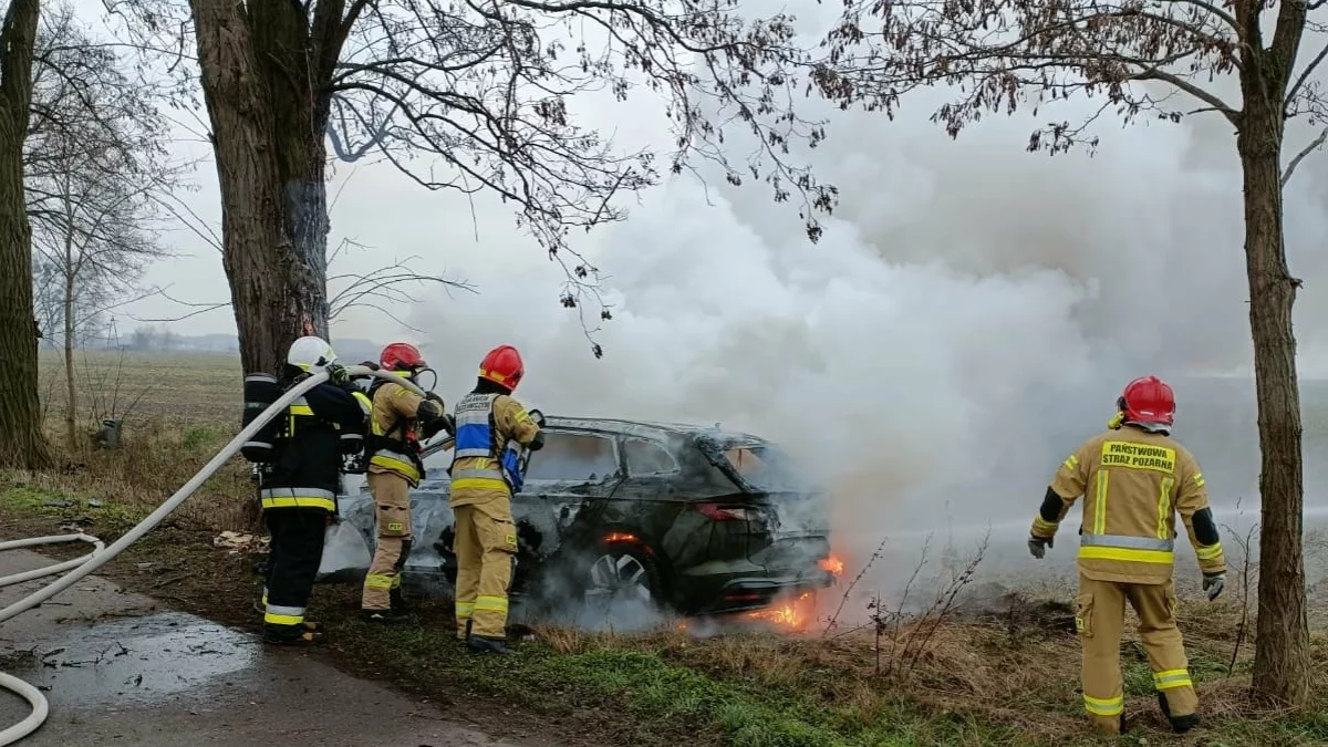 - Kierowca samochodu elektrycznego marki Skoda, po wyprzedzeniu innego pojazdu, wrócił na prawy pas ruchu, a następnie uderzył w drzewo. Po uderzeniu pojazd zaczął się palić. Kierowca zginął na miejscu - mówi asp. szt. Monika Kołaska, rzeczniczka prasowa Komendy Powiatowej Policji w Pleszewie.