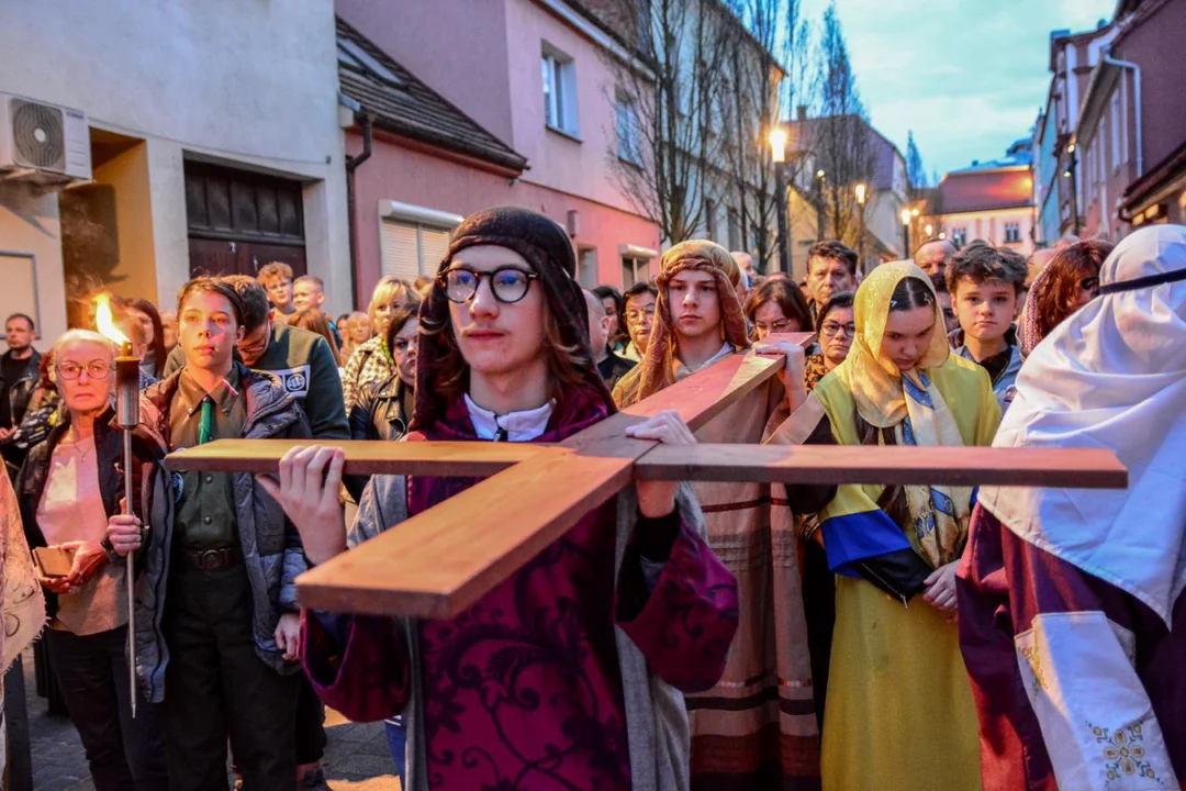 Później uczestnicy przeszli ulicami Padrewskiego, Wrocławską na Rynek, a dalej ulicą Kościelną do parku Radolińskich. W inscenizacji uczestniczyli m.in. siostra Konstancja Pelińska, przełożona domu sióstr elżbietanek oraz wikariusze - ksiądz Paweł Gomółka z parafii św. Marcina oraz ksiądz Przemysław Kapała z parafii Chrystusa Króla. Uczestnicy nieśli sporych rozmiarów krzyż. Na koniec utwór "Golgota" zaśpiewała Dobrosława Wielgosz z Kotlina, uczennica jarocińskiego liceum ogólnokształcącego.