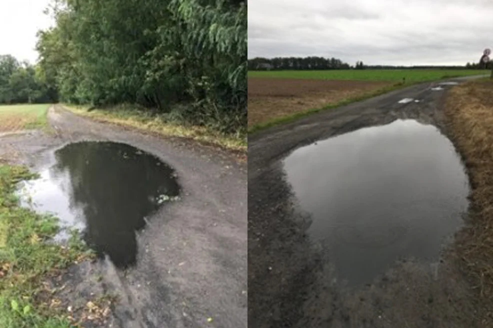 - Tam nie można przejechać, są ogromne dziury. Proszę sobie wyobrazić, jak tam wyglądało po ulewnych opadach. Dwie ogromne kałuże i ich pokonanie samochodem osobowym było ryzykowne. Są tam dwie dziury, które rozciągają się od jednej strony jezdni do drugiej. Z drugiej strony jest las, krzaki i nikt tak blisko nie podjedzie, bo porysuje sobie samochód, a z drugiej grzęźnie w polu - opowiada mieszkaniec gminy Nowe Miasto.