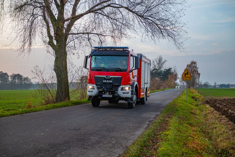 Cztery zastępy straży pożarnej na miejscu zdarzenia w Twardowie