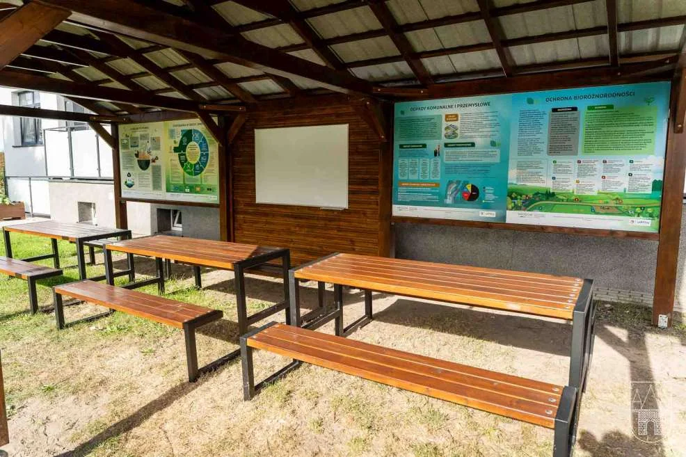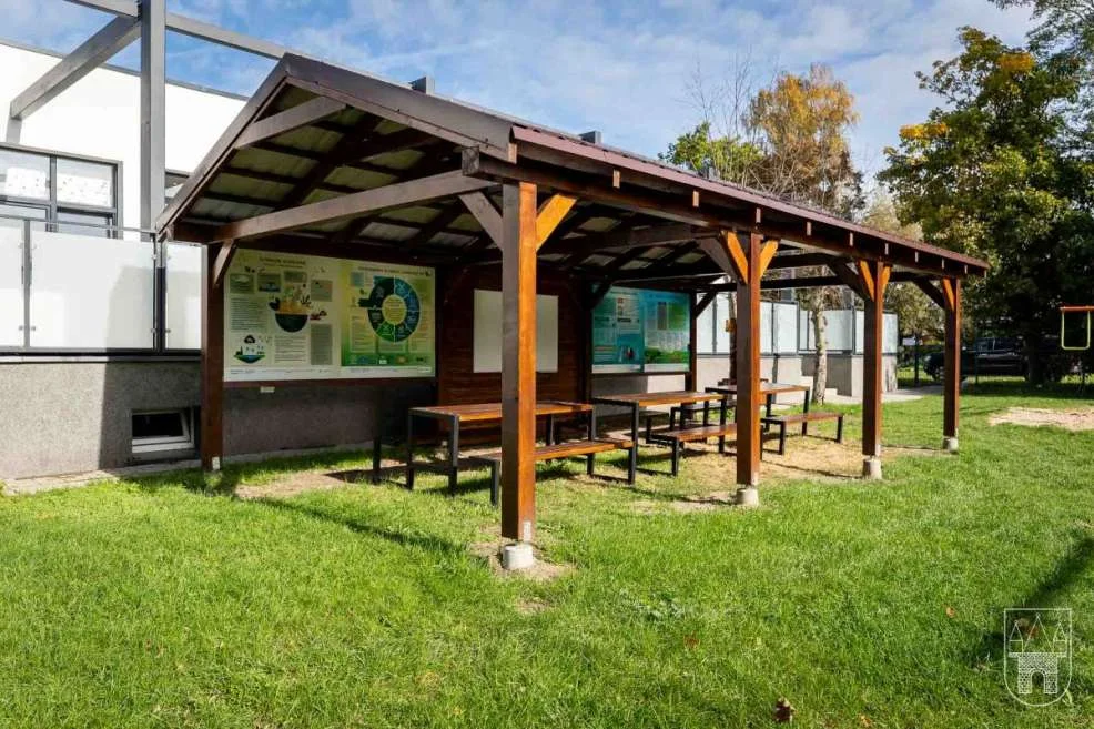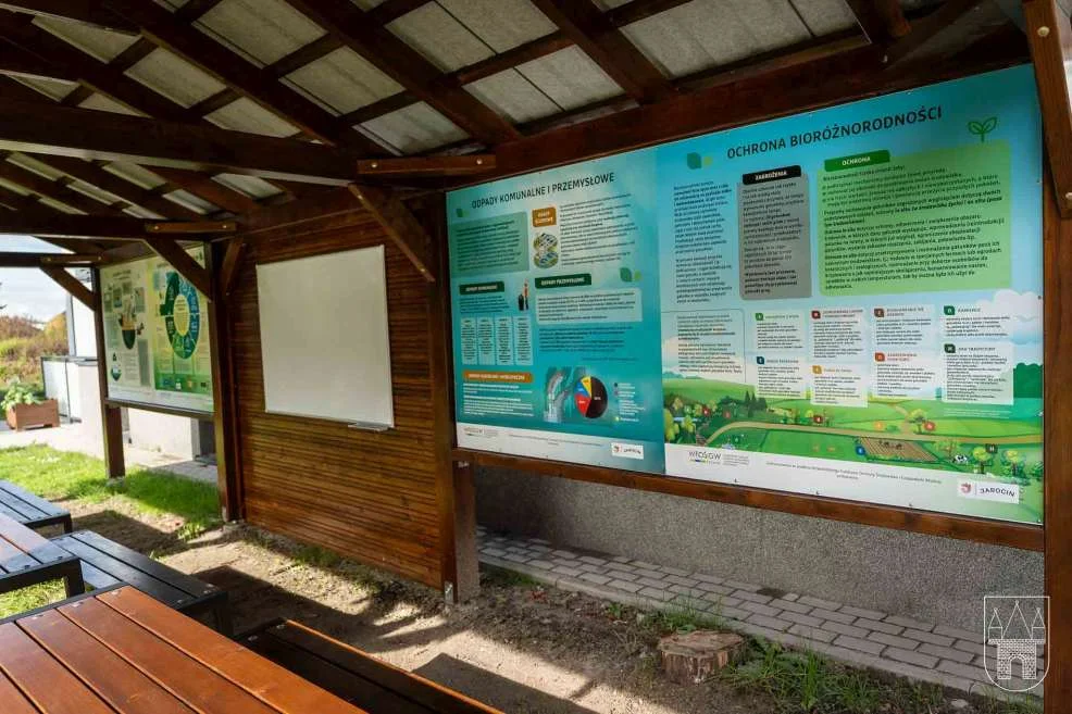 - tablice edukacyjne wbudowane w ściany wiaty,