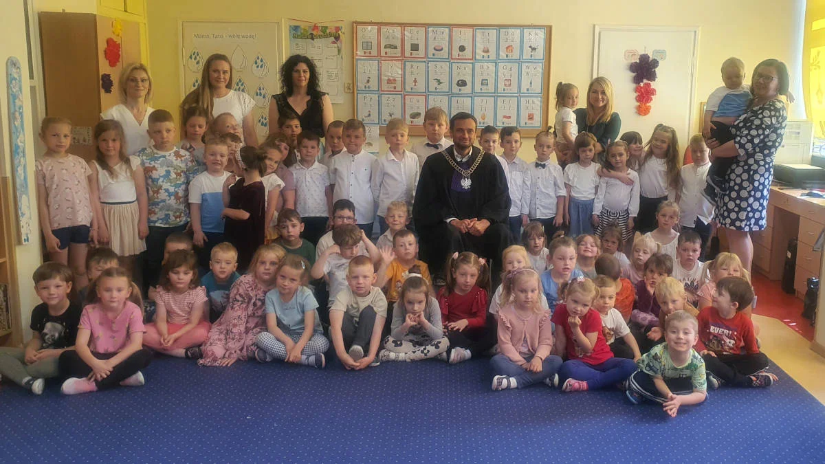 Maciej Gruchalski opowiedział dzieciom o zawodzie sędziego. Przedszkolaki mogły też przymierzyć jego togę.