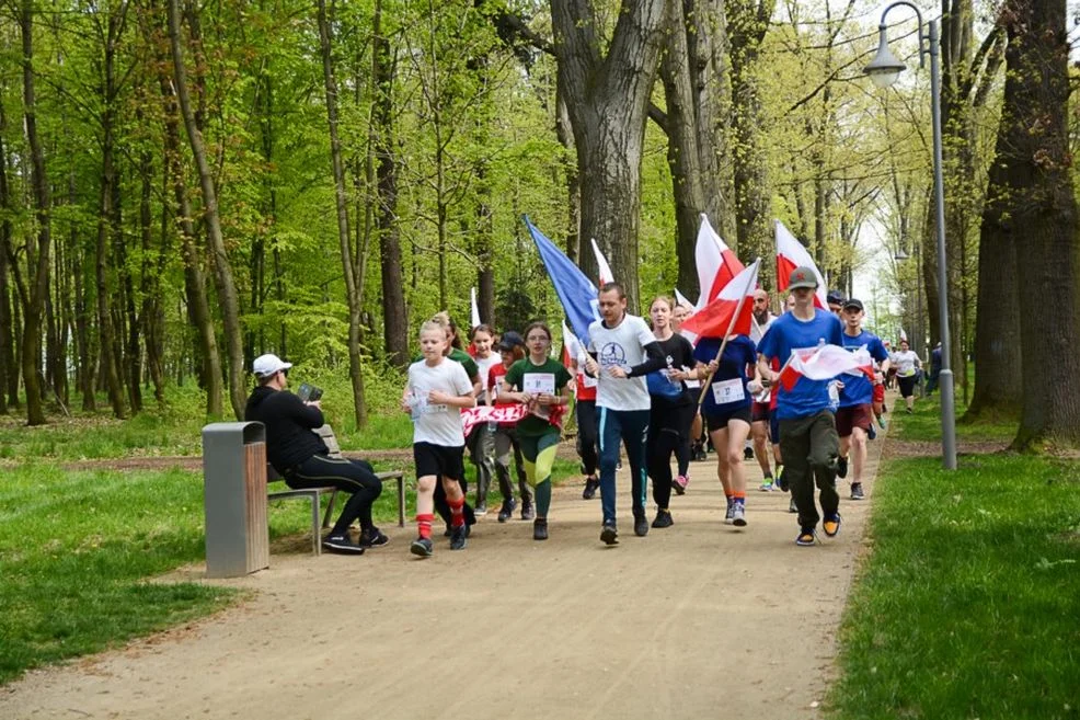 Tak wyposażeni ruszyli w biało-czerwony bieg po terenie parku.
