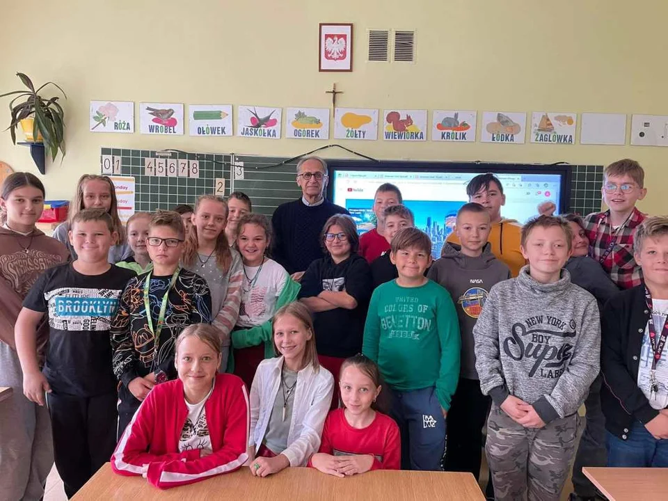 Niezwykłym wydarzeniem było spotkanie z obcokrajowcem Robertem M.Pine, który przyleciał do Polski z Chicago. Uczniowie klas 5-8 mieli okazję dowiedzieć się ciekawostek o amerykańskim jedzeniu i zadać kilka pytań. Ci bardziej odważni mogli się sprawdzić w konwersacjach po angielsku. Dodatkowo uczniowie klasy 6, którzy biorą udział w pozalekcyjnych zajęciach z języka angielskiego, przygotowali wraz z gościem hot dogi w wersji z Chicago - obowiązkowo z papryczkami i bez ketchupu.
