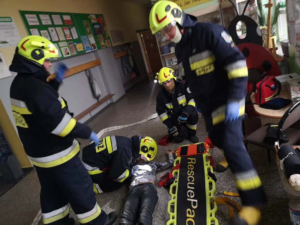 Dzieci i pracownicy Szkoły Podstawowej w Kolniczkach ewakuowano na plac przed szkołą, a na miejsce przyjechali druhowie OSP Szczypłów i OSP Klęka. Mimo zadymienia w budynku i jednej osoby poszkodowanej, dzieci nie sparaliżował strach - bo były to tylko ćwiczenia.