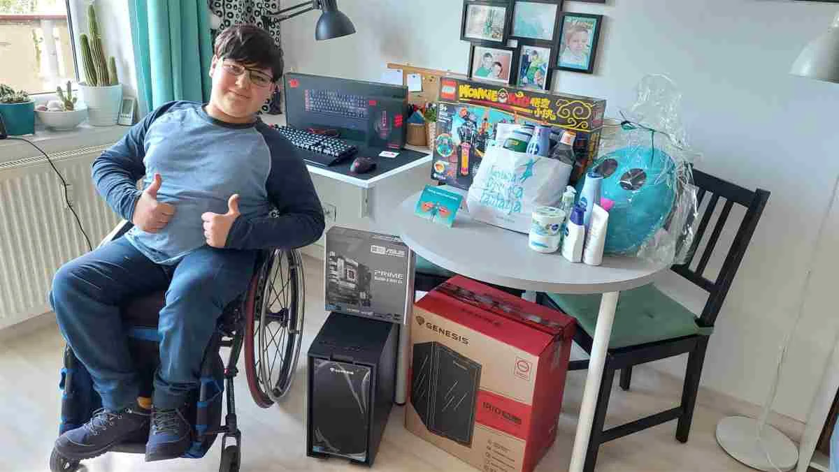 13-latek interesuje się wszystkim, co jest związane z grami komputerowymi, V-R, PlayStation i YouTube. Mówi, że zza ekranu komputera nie widać, że ktoś jest inny i ma jakieś ograniczenia. W świecie wirtualnym nikt go nie ocenia z perspektywy niepełnosprawności. Nikodem marzył o komputerze gamingowym i dlatego Fundacja Dziecięca Fantazja utworzyła zbiórkę na ten cel. Udało się zebrać potrzebne 7 tysięcy złotych, a teraz wymarzony sprzęt pozwoli Nikodemowi rozwijać swoją pasję i poświęcać się temu, co tak bardzo kocha. Dodatkowo Nikodem otrzymał wiele upominków, kosmetyki i słodycze.