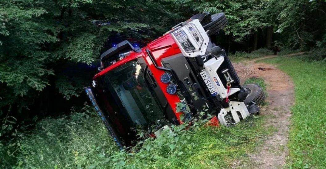 Przyjechali gasić las. Wóz wpadł do rowu