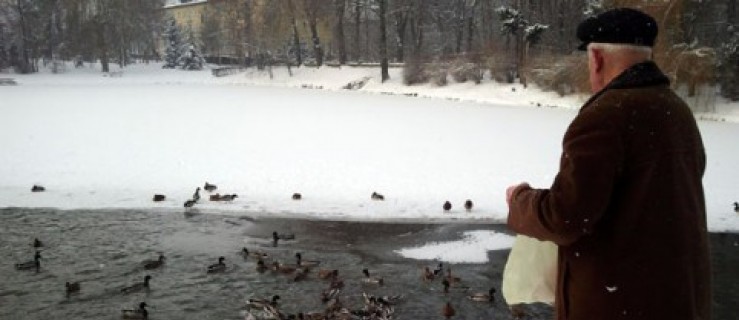 Tymczasem nad stawem spotykamy pana Antoniego Karolczaka z Jarocina, który samego siebie nazywa „etatowym dokarmiaczem”. - Jestem tu codziennie. W piekarni na Maratońskiej kupuję chleb za 50 groszy. Jest mróz, więc mamy z dziećmi nie przychodzą, a one są naprawdę głodne - mówi i rzuca kaczkom chleb. Te natychmiast podpływają i wyszarpują sobie jedzenie (ZOBACZ WIDEO).