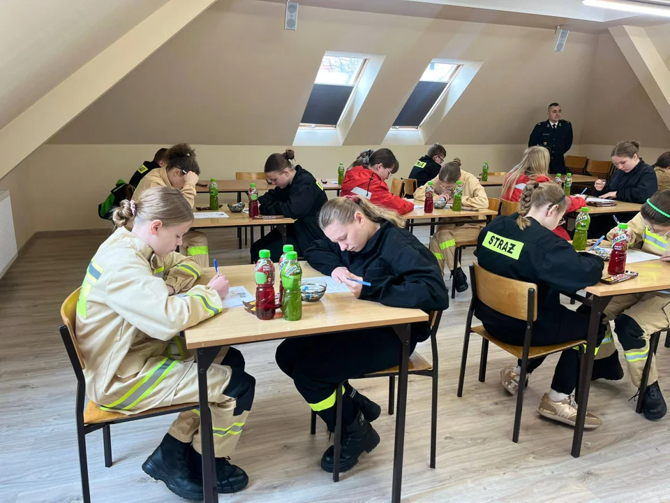 Uczestnicy turnieju przystąpili do testu pisemnego, który wymagał opanowania szerokiego zakresu materiału. Pytania dotyczyły m.in.: przepisów przeciwpożarowych, historii ruchu strażackiego, procedur ratowniczych czy parametrów i zastosowania specjalistycznego sprzętu gaśniczego.