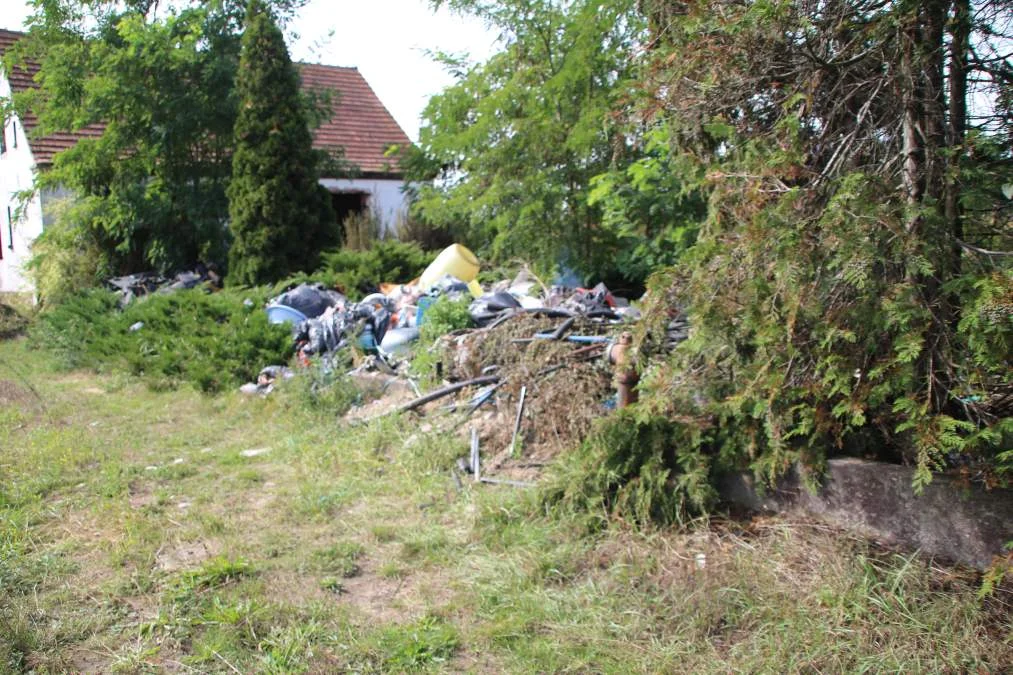 Sterta śmieci znajduje się na jednej z prywatnych posesji w Wyszkach. Teren nie jest ogrodzony. W domu nie ma okien. Hałda śmieci leży przed budynkiem. Praktycznie jest tam wszystko: stara odzież, akcesoria samochodowe, beczki, węże, worki. Śmieci są poprzerastane trawą. Prawie rok temu mieszkańcy Wyszek sygnalizowali, że wysypisko wciąż się powiększa.