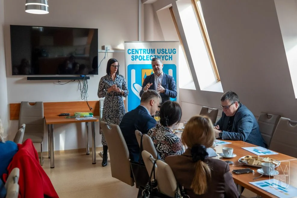 Uczestnicy, wśród który byli między innymi burmistrz Urszula Wyremblewska-Korzyniewska, sekretarz gminy Robert Kaźmierczak i dyrektor CUS-u Igor Armon, omówili Regionalny System Opieki Seniora w programie „Wielkopolskie Telecentrum Opieki”.