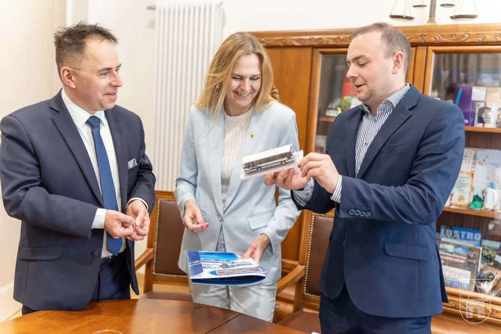 W trakcie spotkania w ratuszu, Urszula Wyremblewska-Korzyniewska, otrzymała od Marcina Gromadzkiego, model autobusu, co wyraźnie ją rozbawiło.