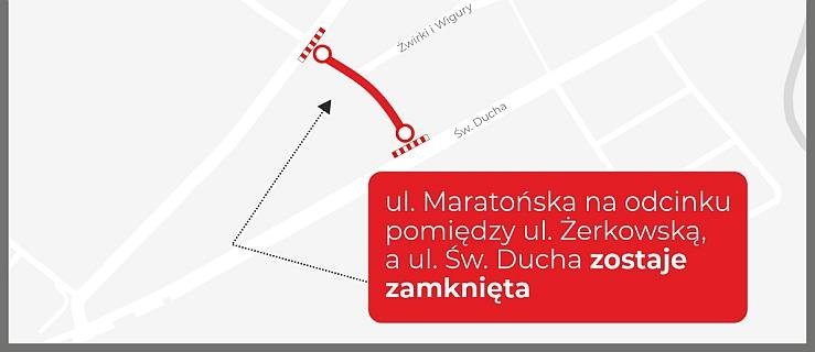 Na początek - od środy - 27 stycznia, roboty będą prowadzone na odcinku ulicy Maratońskiej - od ulicy św. Ducha do Żerkowskiej. Droga w tym miejscu zostanie zamknięta. Dojazd do ulicy Żwirki i Wigury będzie się odbywał ulicą Harcerską. Utrudnienia mogą potrwać do końca lutego.