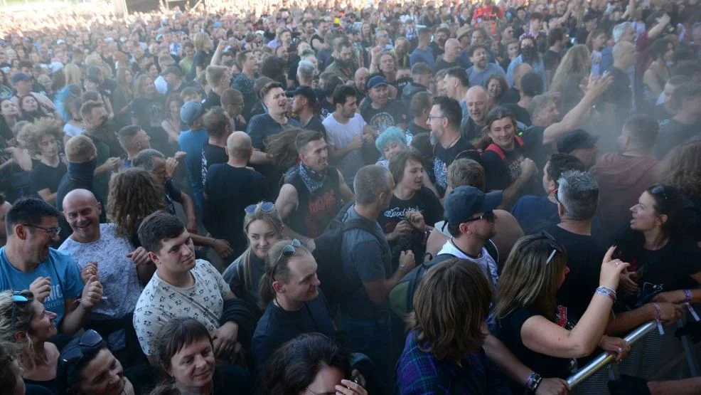 Koncert Huntera przyciągnął pod scenę zdecydowanie liczniejszą grupę osób. Można ją już liczyć nawet w tysiącach. Mamy także pierwsze dzisiejszego dnia pogo.