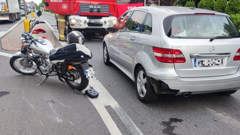 Do zdarzenia doszło w miejscowości Witaszyce. Samochód marki Mercedes zderzył się z motocyklem. W wyniku prowadzonych działań kierujący motocyklem został przetransportowany do szpitala z obrażeniami ręki i nogi - mówi asp. Patryk Idczak z Komendy Państwowej Straży Pożarnej w Jarocinie