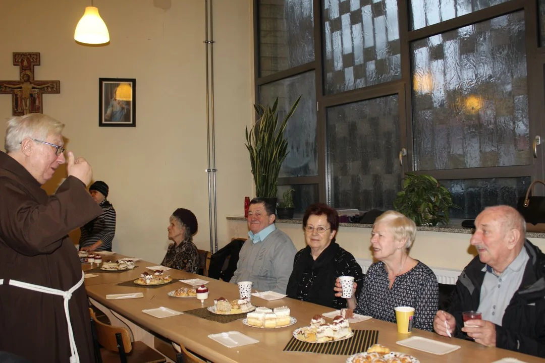 Po mszy św. wszyscy uczestnicy zostali zaproszeni na kawę i ciasto do trzech salek dolnego kościoła, z których na co dzień korzystają wspólnoty działające we franciszkańskiej parafii. Przy organizacji poczęstunku pomogło również Centrum Usług Społecznych w Jarocinie. Jego dyrektor, Igor Armon przedstawił seniorom ofertę zajęć, z której można skorzystać w gminie Jarocin. Mówił również o działalności siedmiu klubów społecznych. Podkreślił, że istnieje możliwość utworzenia go w przyszłym roku przy parafii św. Antoniego Padewskiego w Jarocinie.