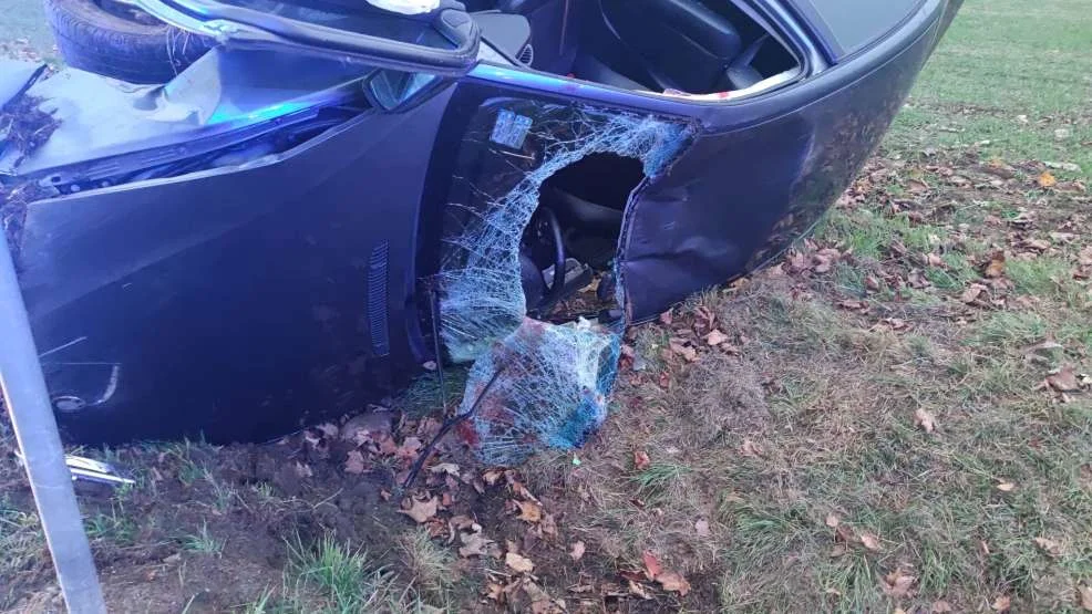 Dwie osoby z niegroźnych obrażeniami ciała trafiły do szpitala po tym, jak w niedzielę na drodze wojewódzkiej 443 w Bachorzewie dachowało auto osobowe.