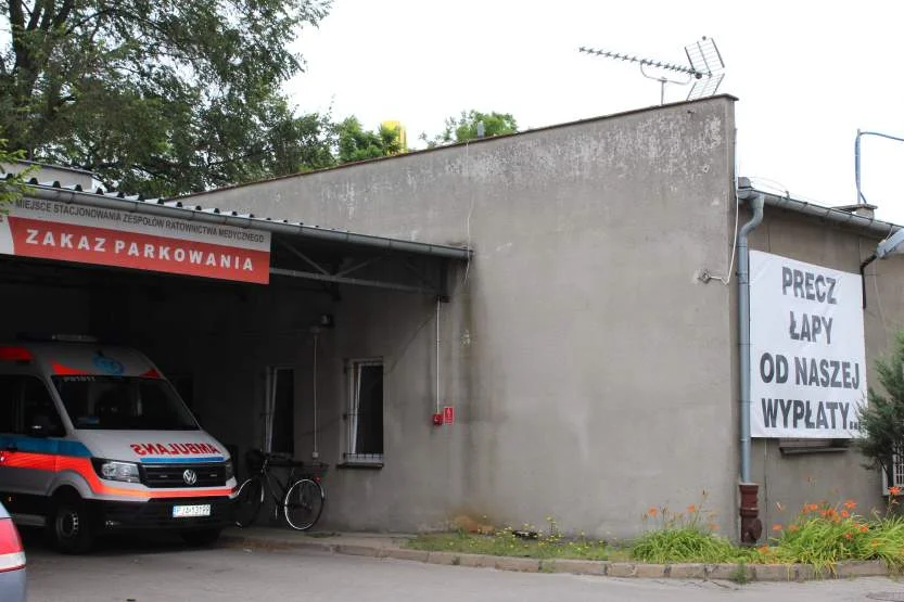 Teraz na budynku pogotowia znów wywieszono czarne flagi związkowe i baner z hasłem: „Precz łapy od naszej wypłaty…” Transparent wywiesili związkowcy.