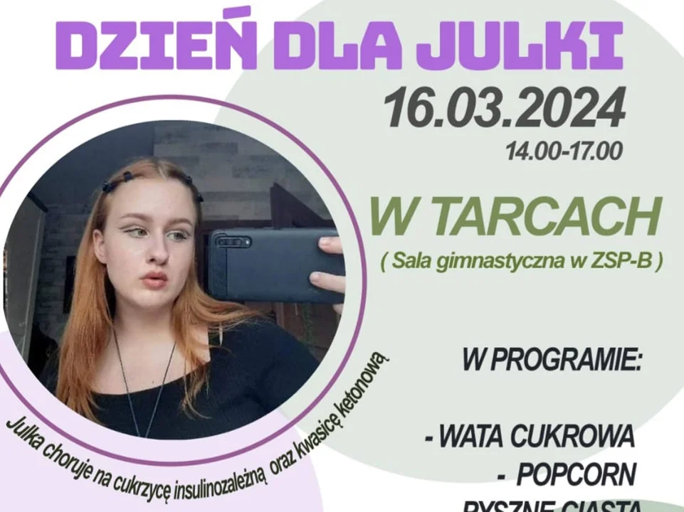 W najbliższą sobotę (16 marca) w Tarcach, w auli Zespołu Szkół Przyrodniczo-Biznesowych zostanie zorganizowany "Dzień dla Julki". Przygotowane zostanie wiele atrakcji, szczególnie dla najmłodszych m.in. malowanie twarzy, zaplatanie kolorowych warkoczyków, robienie tymczasowych tatuaży oraz zabawy z klockami Lego. Będzie też popcorn, wata cukrowa i ciasta upieczone przez Koła Gospodyń Wiejskich. Imprezę zaplanowano w godz. 14.00-17.00. Na miejscu będzie też możliwość zakupienia "Kartki dla Julki" wraz z upominkiem.