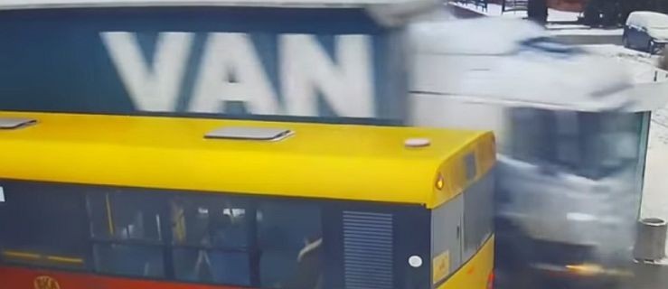 Rozpędzona ciężarówka wjechała na chodnik pomiędzy autobus a czekających na przystanku ludzi. Zniszczyła biletomat i znaki drogowe. Kierowca odjechał z miejsca zdarzenia.