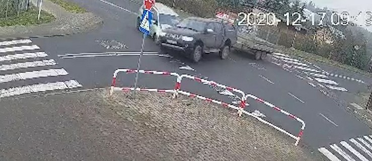 Portal dotarł do nagrania ze zdarzenia. Kamera zarejestrowała, jak od strony ulicy Do Zdroju wjeżdża na skrzyżowanie mitsubishi z przyczepką.