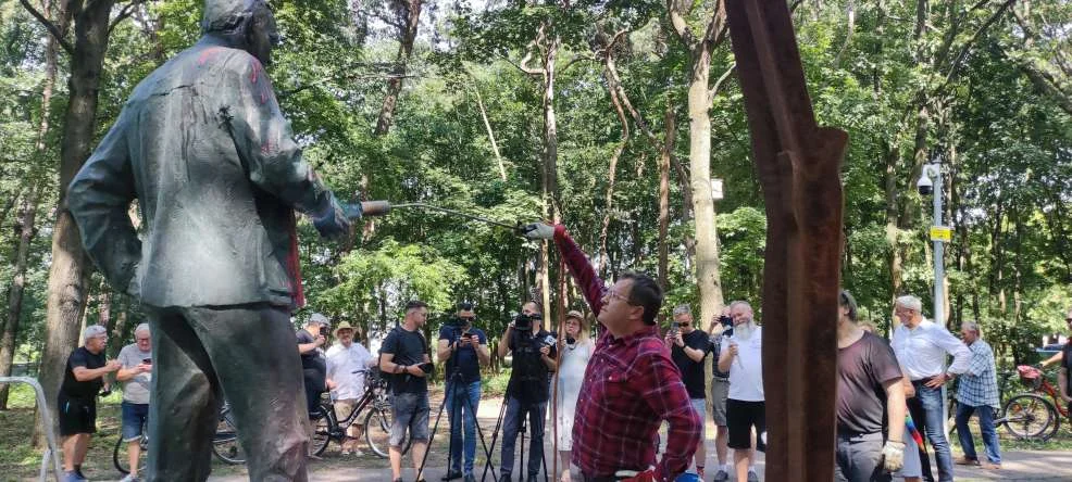 W akcję usunięcia farby z pomnika osobiście zaangażował się wówczas Adam Pawlicki.