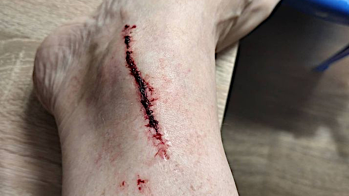 Z jej relacji wynika, że początkowo nie czuła bólu. Po pewnym czasie wystąpiły dolegliwości. Jedną nogę ma rozciętą i obrzęk stawu skokowego, a na drugiej otarcia naskórka. Kobieta udała się do lekarza. Otrzymała zastrzyk przeciwtężcowy. Zranione nogi musi smarować maściami