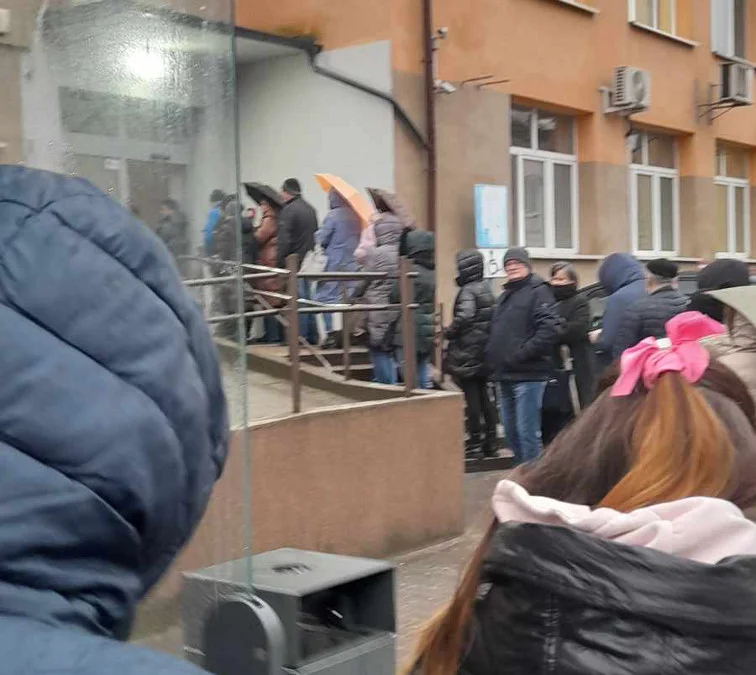 Kolejka przed jedną z jarocińskich przychodni