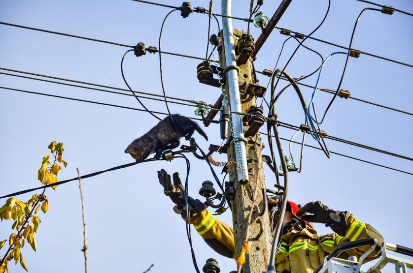 Kot utknął na słupie energetycznym. Wezwano strażaków