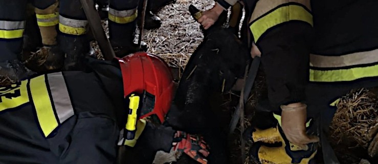 Po prawie trzech godzinach wysiłku wielu osób krowę udało się wyciągnąć.