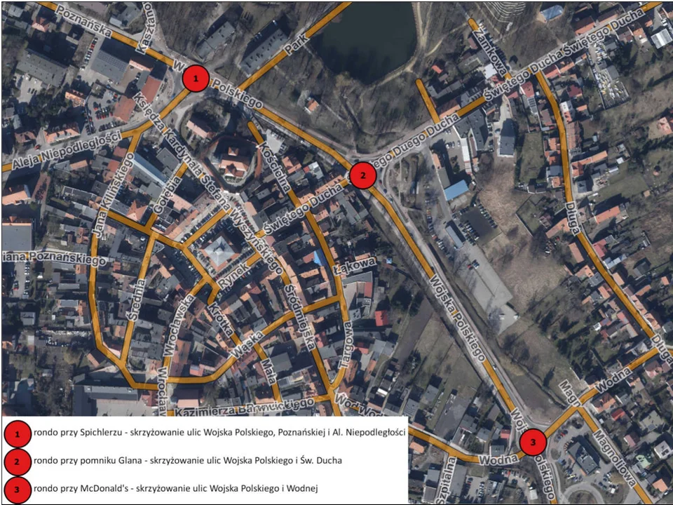 - przy Spichlerzu - skrzyżowanie ulic Wojska Polskiego, Poznańskiej i Al. Niepodległości,