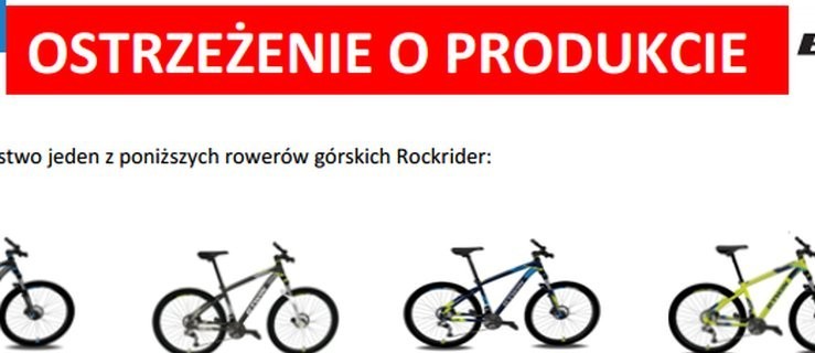 Sprawa dotyczy rowerów górskich Rockrider 520, 540 (rozmiar L, XL, w różnych kolorach – czarny, szary, żółty, granatowy) sprzedawanych między 1 października ubiegłego roku a 6 marca 2017.