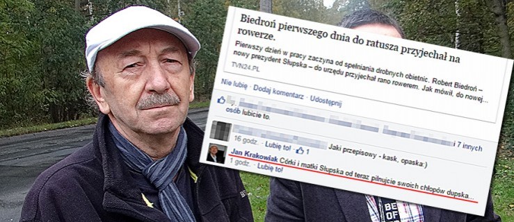 Minął tydzień od złożenia ślubowania, a Krakowiak już daje o sobie znać. Pod facebookowym postem o Robercie Biedroniu, homoseksualnym prezydencie Słupska, napisał rymowany komentarz: "Córki i matki Słupska od teraz pilnujcie swoich chłopów dupska...".