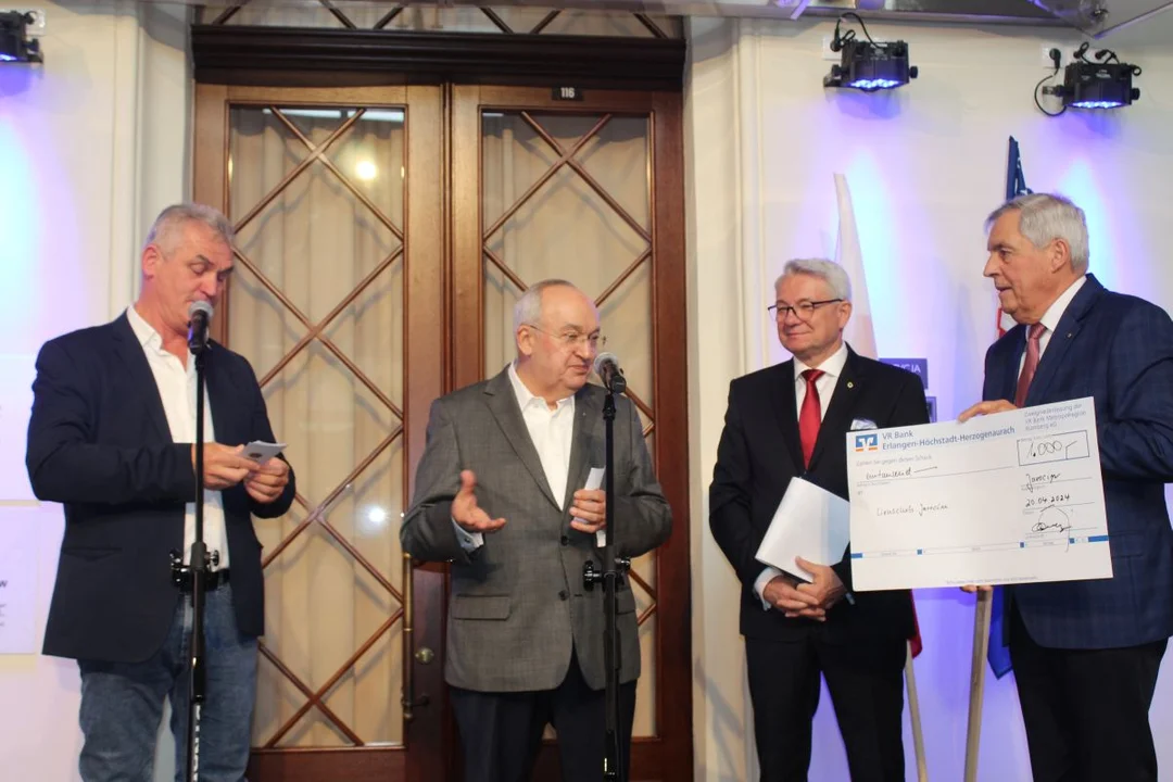 Powstanie organizacji w naszym mieście nie byłoby również możliwe bez Jerzego Jambora, który należy do Lions Clubu Poznań 1990. Wieloletni prezes zakładu zielarskiego w Klęce wspominał o początkach stowarzyszenia. Pełnił też rolę tłumacza dla delegacji z zaprzyjaźnionego Lions Club Aischgrund. Już w czasie swojego wystąpienia wspomniał o koncertach z udziałem niemieckiej sopranistki Gudrun Doerpholz-Friedrich. Podkreślił wówczas, że w planach było zorganizowanie w Jarocinie konkursu dla młodych śpiewaków noszącego imię innej wybitnej śpiewaczki operowej - Elisabeth Schwartzkopf, którego nie udało się zrealizować z uwagi na niekorzystny klimat wokół patronki. Wyraził nadzieję, że do tego pomysłu będzie jeszcze okazja wrócić w kolejnych latach działalności Lions Clubu Jarocin. Poparła go również obecna na uroczystości Gudrun Doerpholz-Friedrich. Od gości z Niemiec jubilaci otrzymali kilkanaście butelek wina oraz czek na tysiąc euro. I zaproszenie na uroczystości jubileuszowe, które odbędą się za 4 lata.