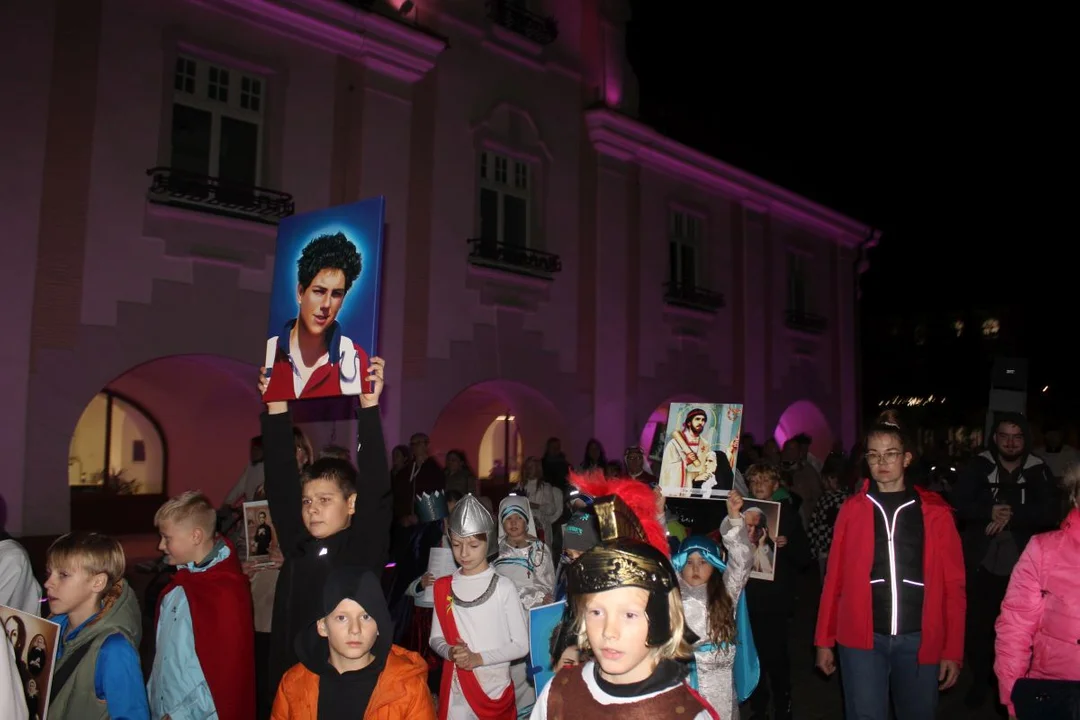 W procesji niesione były również relikwie i wizerunki tych, których Kościół uznał oficjalnie za świętych i błogosławionych. W trakcie Marszu Świętych, który poprowadziła siostra Konstancja Pelinska, przełożona jarocińnskiej wspólnoty elżbietanek, uczestnicy śpiewali piosenki religijne i odmówili dziesiątek różańca św. Po powrocie była okazja do wspólnego zdjęcia. Nagrodzono też dziesięć najlepszych przebrań. Wyboru dokonali ksiądz Rafał Wawrzyniak, wikariusz parafii św. Marcina oraz kleryk Martyn Nagorzycki, który kilka dni temu w kaplicy Arcybiskupiego Seminarium Duchownego w Poznaniu - jako jeden z trzech alumnów z diecezji kaliskiej - otrzymał sutannę.
