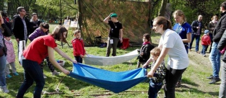 Jarocin. Karuzele wykonane z konarów powiązanych sznurkami, nauka udzielania pierwszej pomocy, strzelanie z łuku, ścianka wspinaczkowa - to tylko niektóre atrakcje majówki z ZHP.