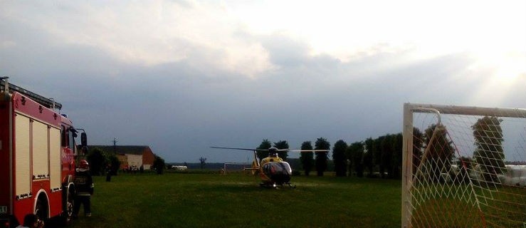 Nieszczęśliwy wypadek w powiecie gostyńskim. Rannego mężczyznę zabrało pogotowie lotnicze do Puszczykowa.