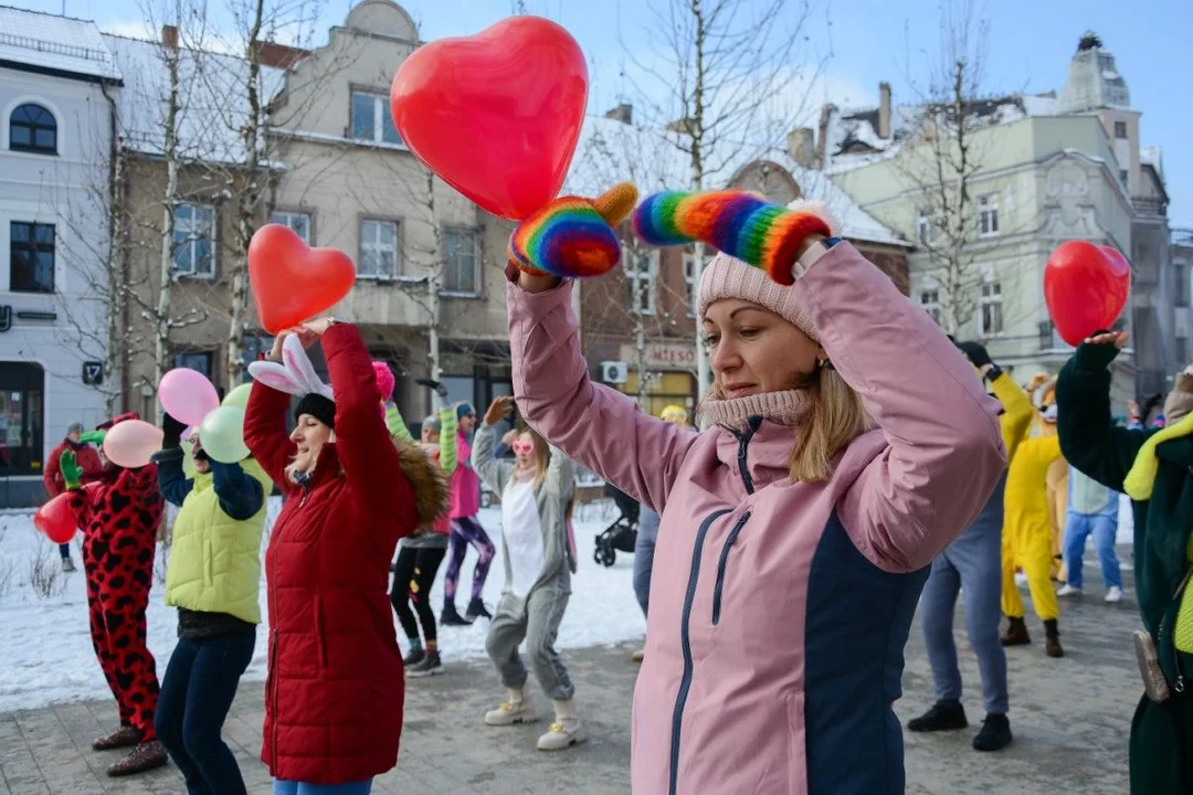 Na rynku w Jarocinie oprócz kolorowych kostiumów pojawiły się również balony. Było mroźnie, ale słonecznie. Wśród uczestników happeningu przeważały osoby dorosłe, ale były też dzieci.