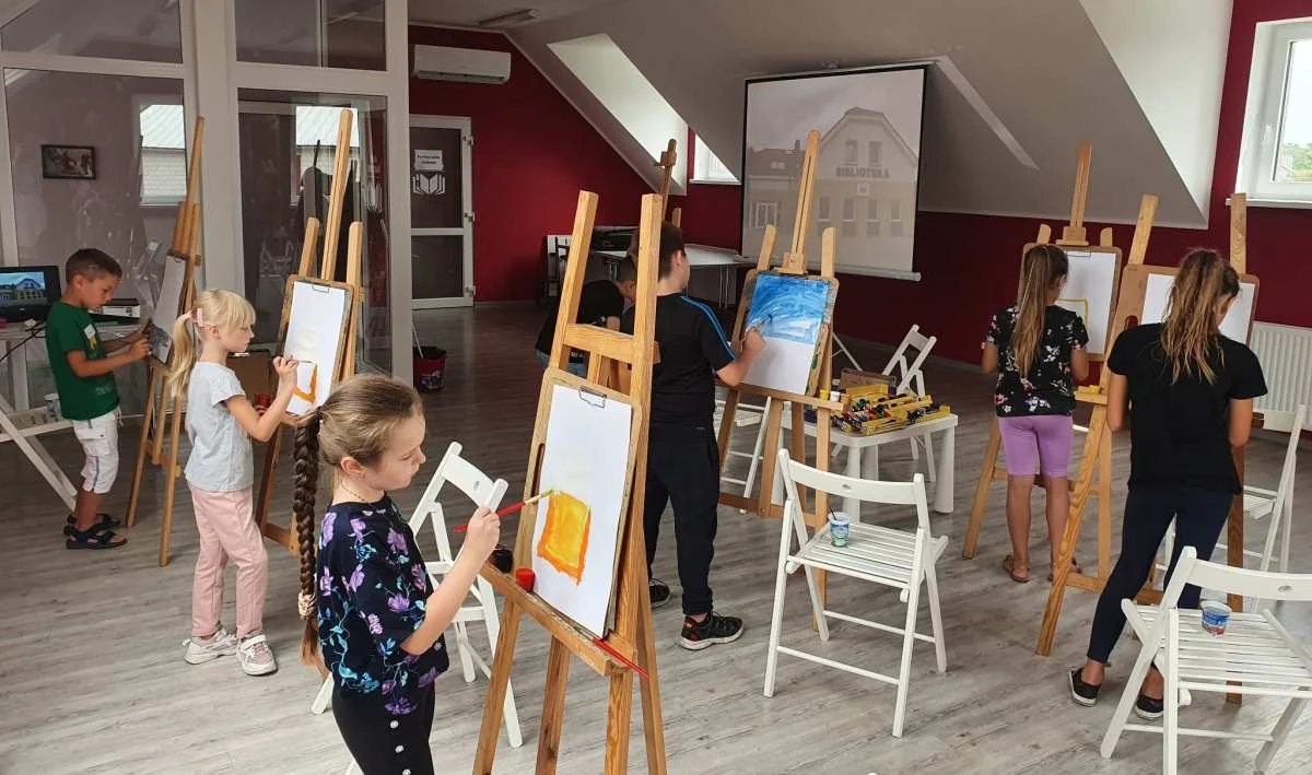 Dzieci z gminy Nowe Miasto tym razem miały okazje rozwinąć swoje zdolności plastyczne. Na rzutniku wyświetlono miejsce, które miały namalować na płótnie. A tym miejscem była... filia biblioteki w Boguszynie, w której odbywały się zajęcia. Zajęcia "Pędzlem po mapie" cieszyły się dużą popularnością. Patrząc na namalowane przez uczestników obrazy, chyba nikt nie miałby wątpliwości jakie miejsce przedstawiają.