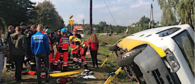 Dostawczy bus wjechał pod pociąg. Rozpędzony skład staranował pojazd. W wypadku ucierpiało osiem osób – to jedna ze scenek, którą ćwiczyli dzisiaj ratownicy w czasie V Zawodów w Ratownictwie w Ramach Kwalifikowanej Pierwszej Pomocy.