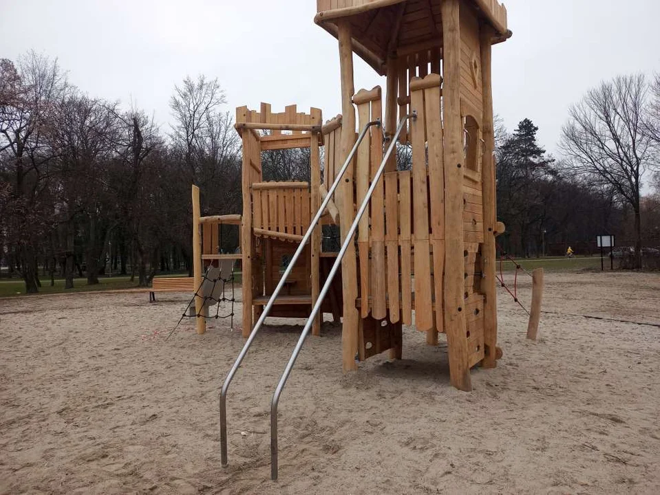Elementy placu zabaw w parku Radolińskich nawiązują do charakteru tego miejsca