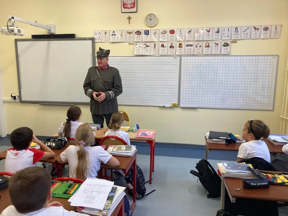 Pod koniec października uczniowie klasy 3a gościli Wojciecha Koterbę - miłośnika historii Powstania Wielkopolskiego. Gość opowiadał o wydarzeniach, które przyczyniły się do odzyskania przez Polskę niepodległości oraz o gen. Stanisławie Taczaku. Uczniowie słuchali z wielkim zaciekawieniem. Celem spotkania było rozwijanie postawy patriotycznej i poznanie historii kraju. Na koniec zajęć dzieci zagrały na flażoletach „Rotę” oraz zrobiły pamiątkowe zdjęcie.