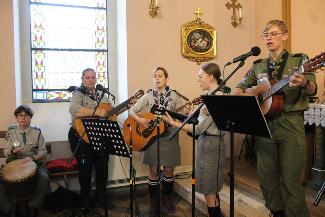 - Dzisiaj w tym kościele św. Jerzego chcemy przeżyć odpust ku czci patrona tej świątyni, więc to kolejna radość, która nas tutaj gromadzi. Trochę inaczej niż każdego roku. W ubiegłych latach zawsze ten odpust przeżywaliśmy w niedzielę, w tym roku w środę i to dzięki, wam, harcerze. To wy zapragnęliście spotkać się na modlitwie, bo to też Wasz patron. Bardzo serdecznie Wam dziękujemy za to, żeście tę modlitwę dzisiaj zainicjowali - powiedział ksiądz Gomółka na wstępie Eucharystii.