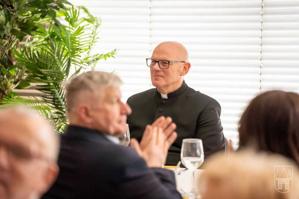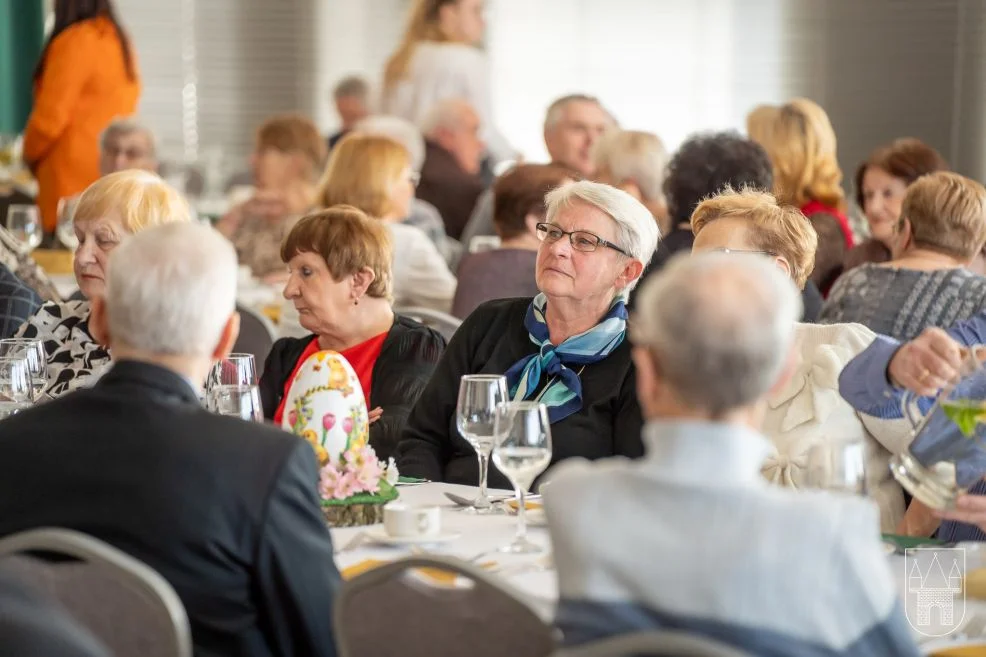 Po części oficjalnej ksiądz prałat Dariusz Matusiak, proboszcz parafii św. Marcina w Jarocinie odmówił modlitwę i pobłogosławił potrawy oraz uczestników spotkania. Przy tej okazji został również uhonorowany i przyjął życzenia gdyż Wielki Czwartek to dzień dziękczynienia za dar kapłaństwa. Nie zabrakło także drobnych upominków. Każdy z uczestników otrzymał słodkiego, czekoladowego zajączka, który wywołał niejeden uśmiech. Na świątecznym stole królowały żur oraz biała kiełbasa, jajka i swojska szynka.