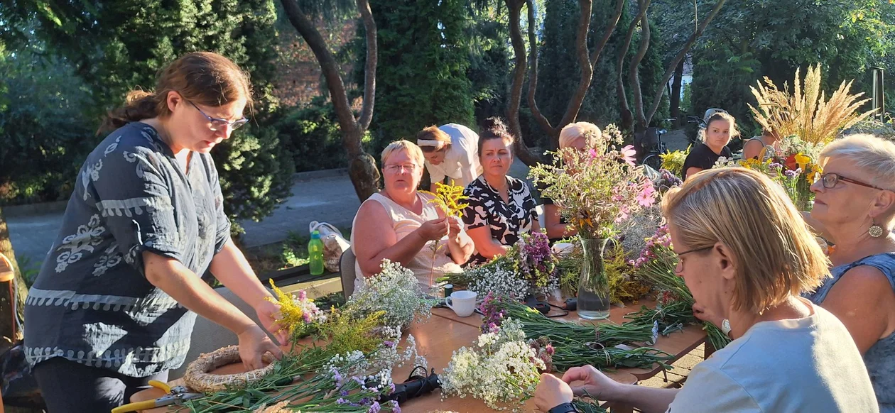 - Nauczyła nas jak wykonać przepiękną i bardzo ozdobną kokardę z liści kukurydzy. Kwiaty, zioła, zboża wykorzystane podczas spotkania pochodziły z roszkowskich ogródków oraz pól i łąk, zebrane wcześniej przez uczestniczki warsztatów. Panie były tak pochłonięte pracą przy tworzeniu wianków, opowieściami jak to dawniej bywało, skąd wziął się zwyczaj tworzenia ozdób z polnych kwiatów i ziół, że nikt nie zauważył zachodzącego słońca – mówi Justyna Daniel –Korzyniewska, przewodnicząca KGW Roszków „Niezłe Ziółka”.