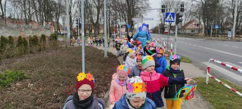 Tradycyjnie już dzieci z przedszkola ubrane w motywy wiosenne z marzanną, kołatkami i gaikami oraz ze śpiewem na ustach przeszły kolorowym korowodem ulicami Mieszkowa w poszukiwaniu oznak wiosny.