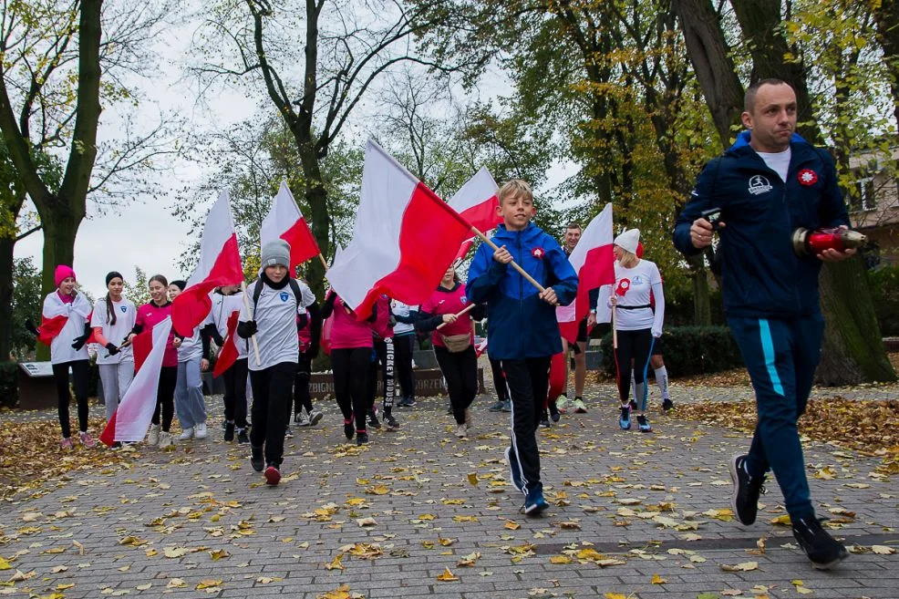 Biegacze Jarocin biegli z flagami w dłoniach