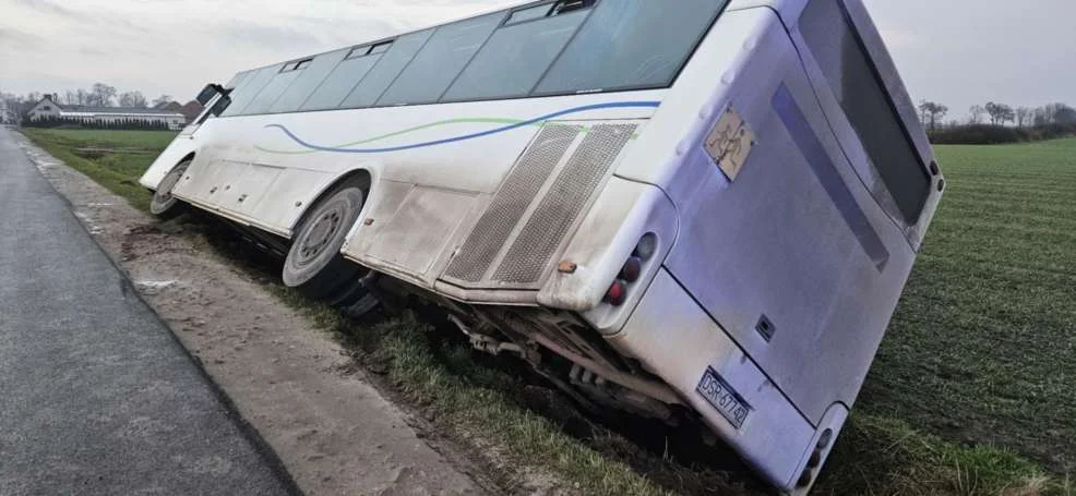 - Kierujący autobusem mężczyzna 65 lat, nie dostosował prędkości do warunków panujących na drodze, zjechał na pobocze i wpadł do rowu. Został ukarany mandatem - informuje asp. sztab. Agnieszka Zaworska, rzecznik Komendy Powiatowej Policji w Jarocinie.